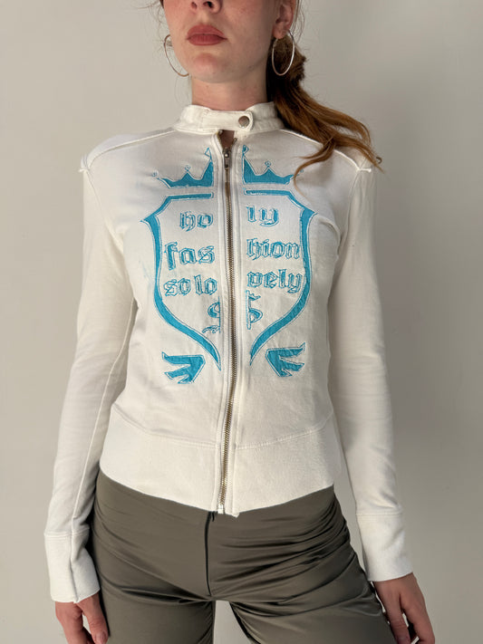White Zip Up Italy Jumper - Size Small/Medium