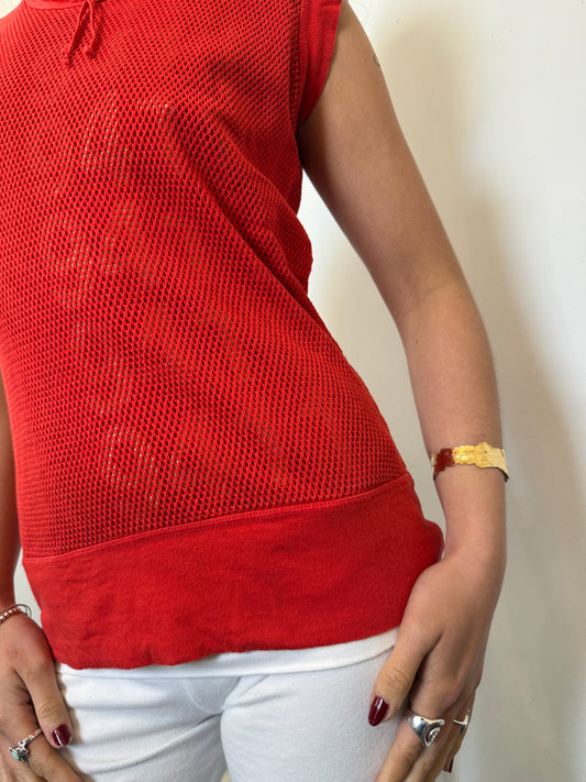 Red Levis Mesh Print Long Top - Size Extra Small