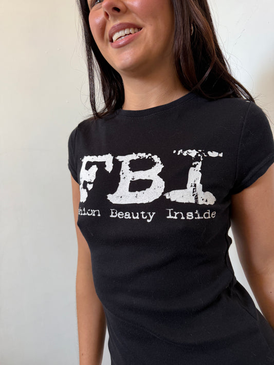 Black FBI Graphic Baby Tee - Size Small