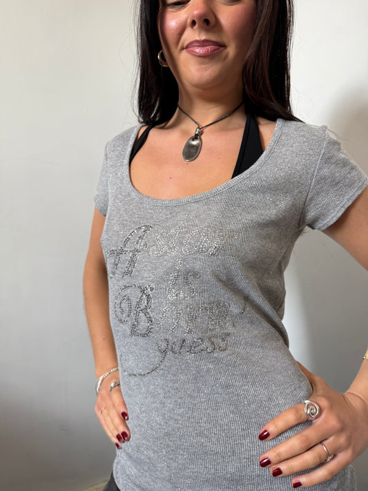 Grey Guess Ribbed Top- Size Large