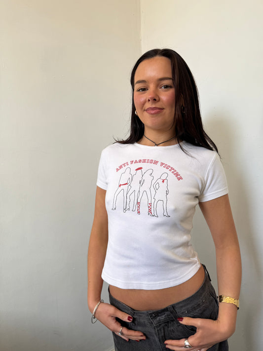 White Graphic Baby Tee - Size Small