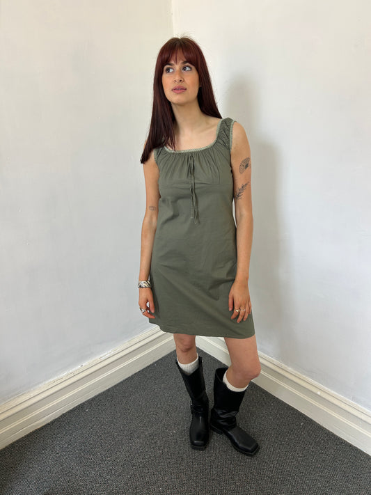 Green Khaki Mini Summer Dress - Size Small