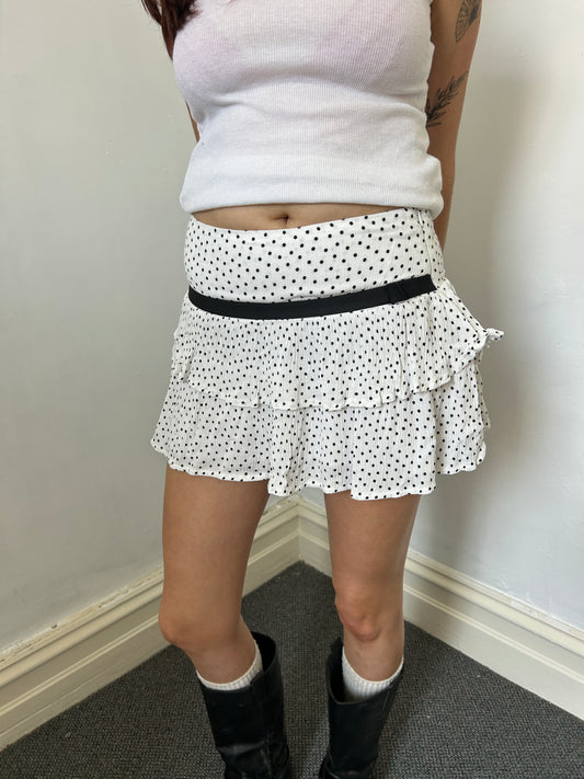 White Black Dots Mini Skirt - Size Medium