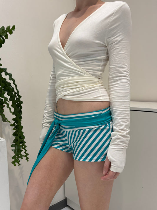 Pink Black Striped Mini Swim Skirt - Size Extra-Small/Small