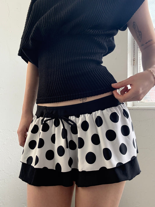 Black White Polka Dot Mini Skirt - Size Small