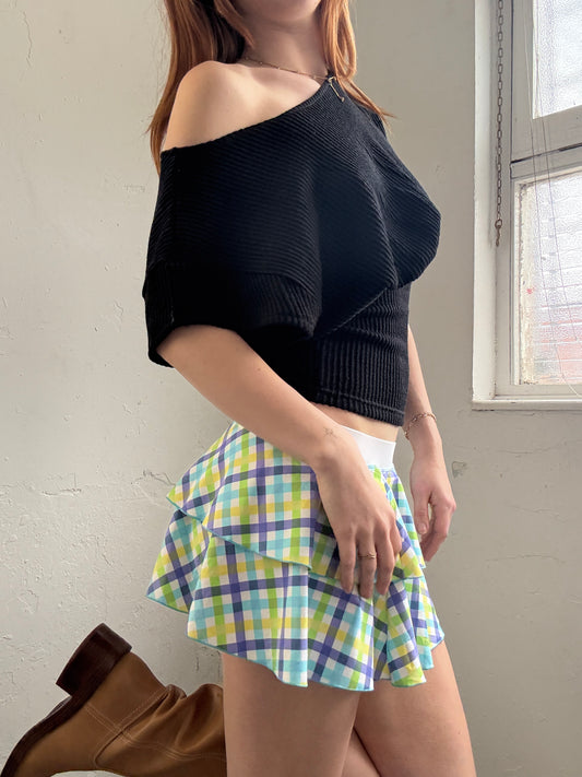 Gingham Colourful Mini Swim Skirt - Size Small/Medium