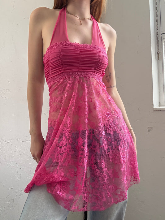 Pink Lace Halter Neck Top Dress - Size Small/Medium