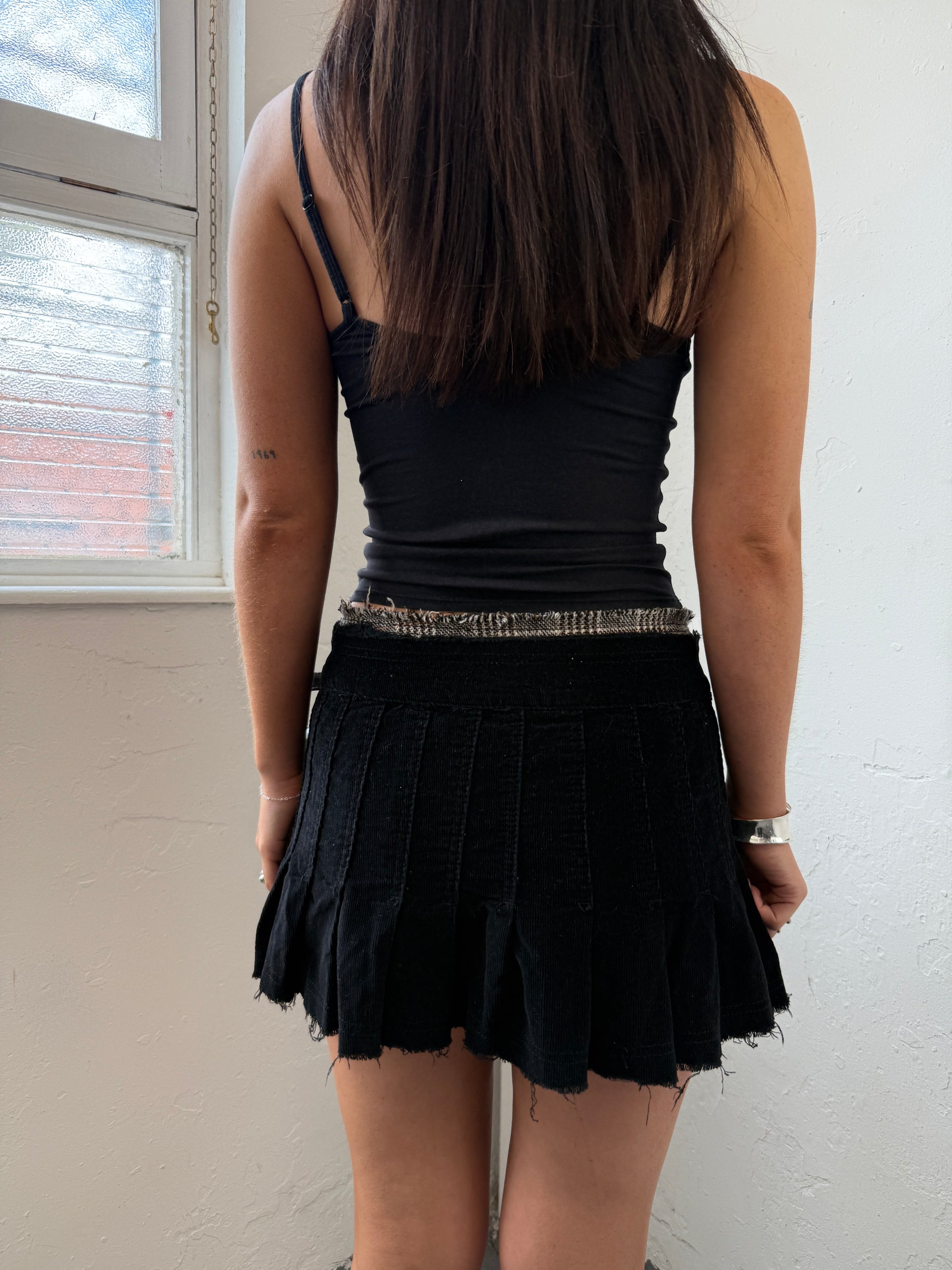 Black Corduroy Mini Skirt w Buckles - Size Small