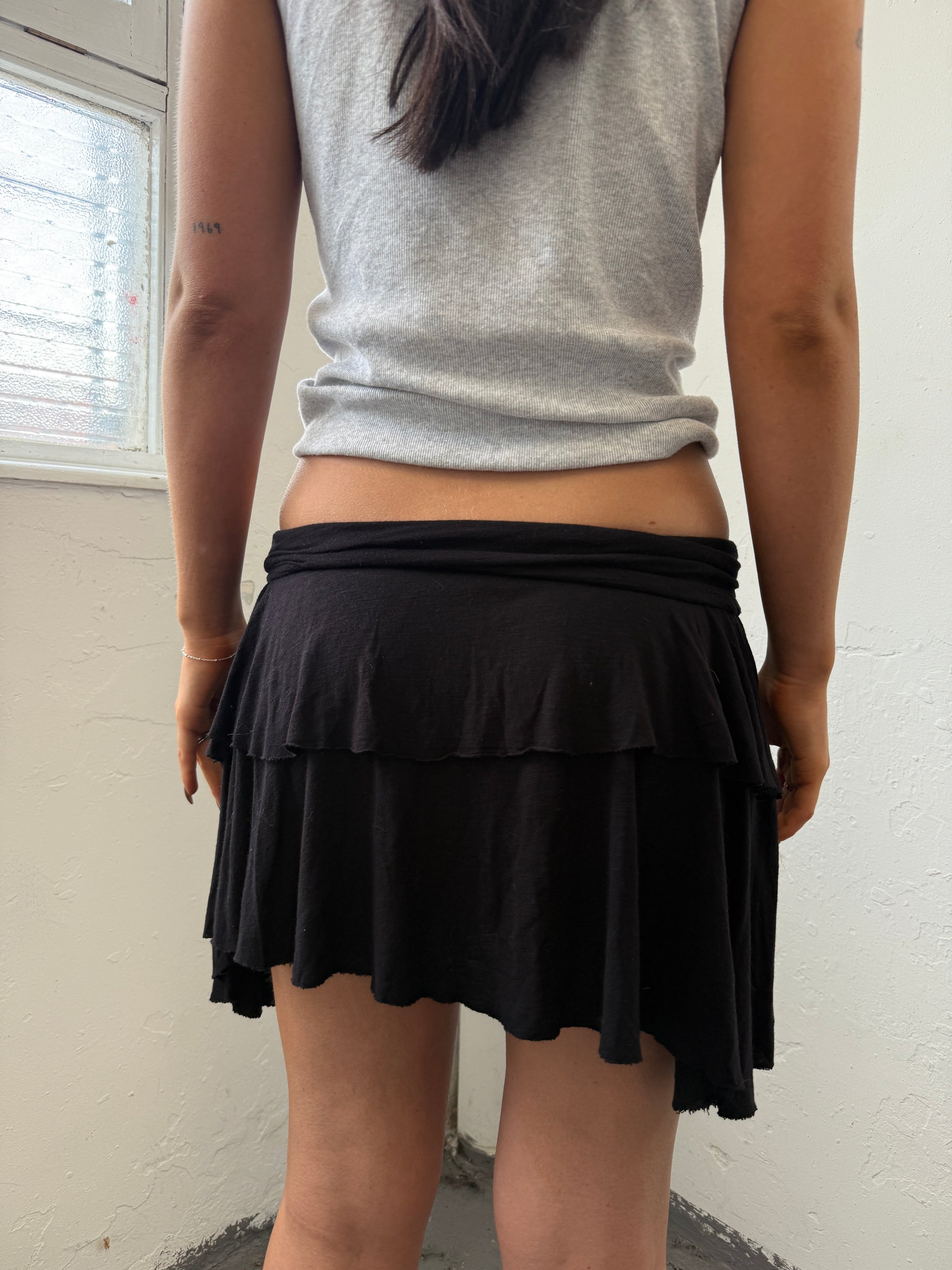 Black rara style mini cotton skirt.