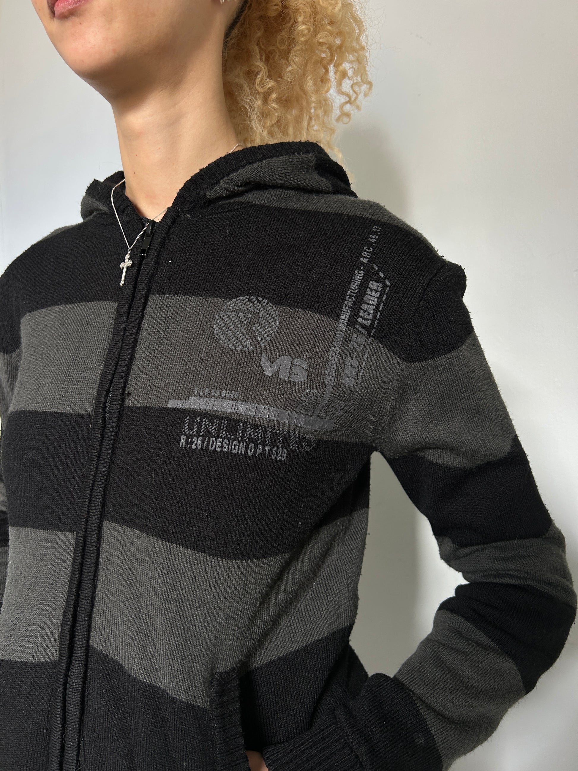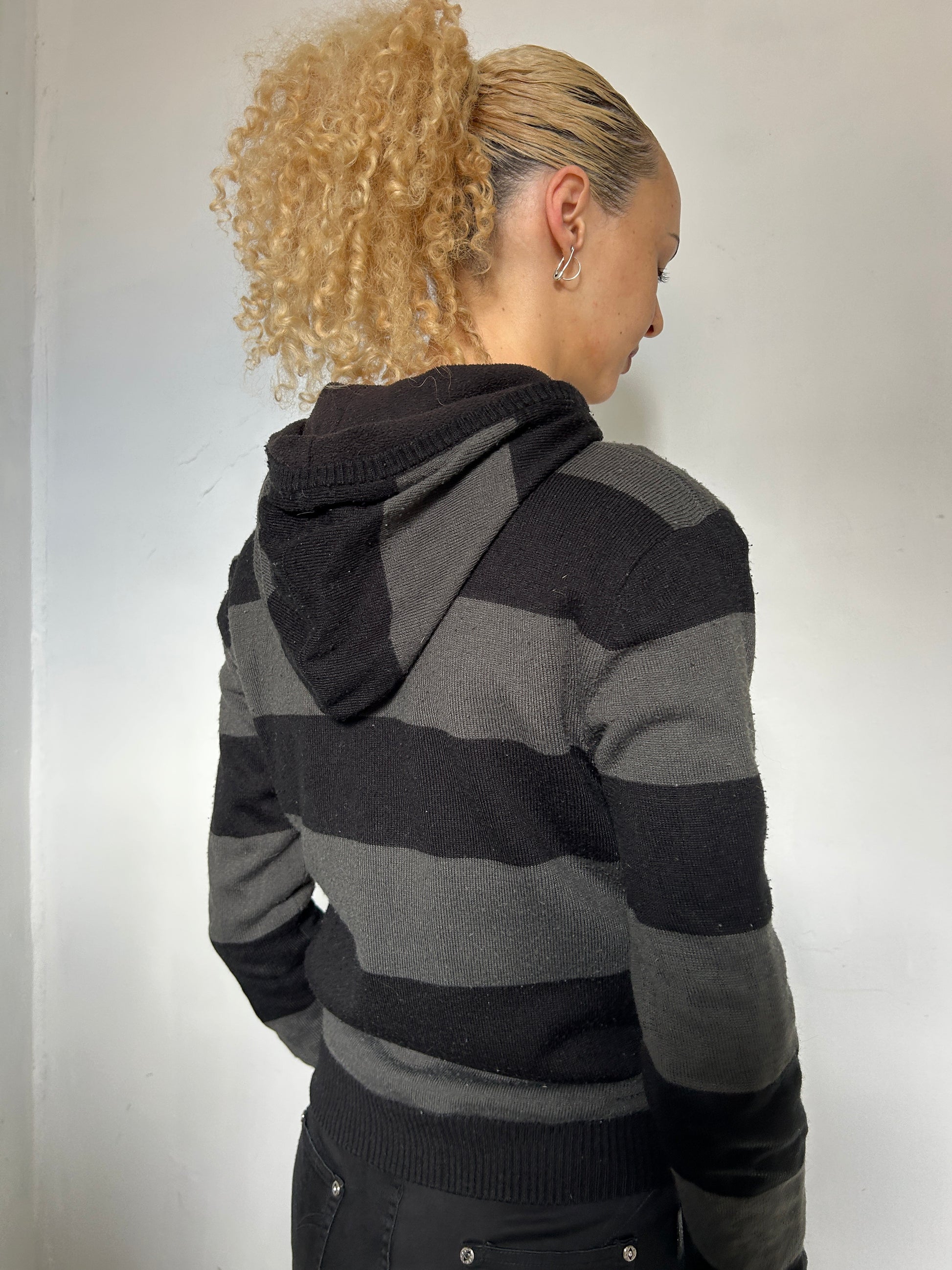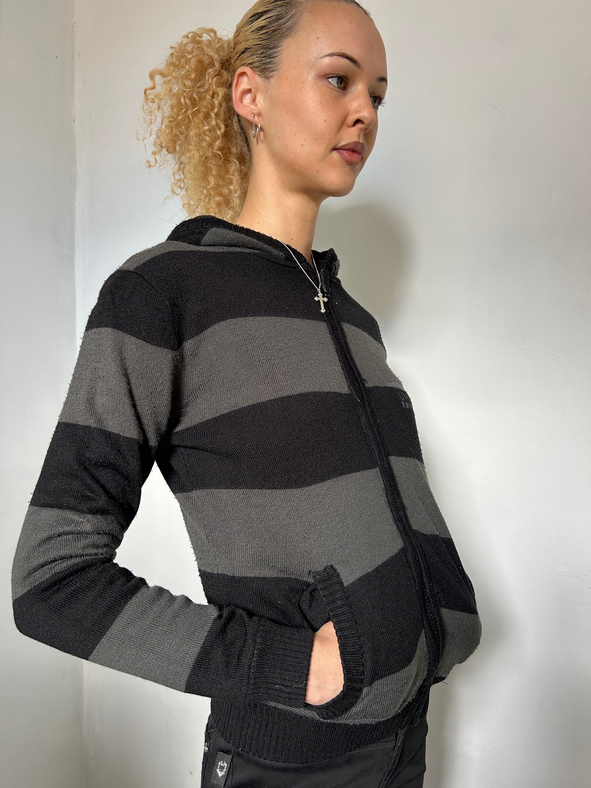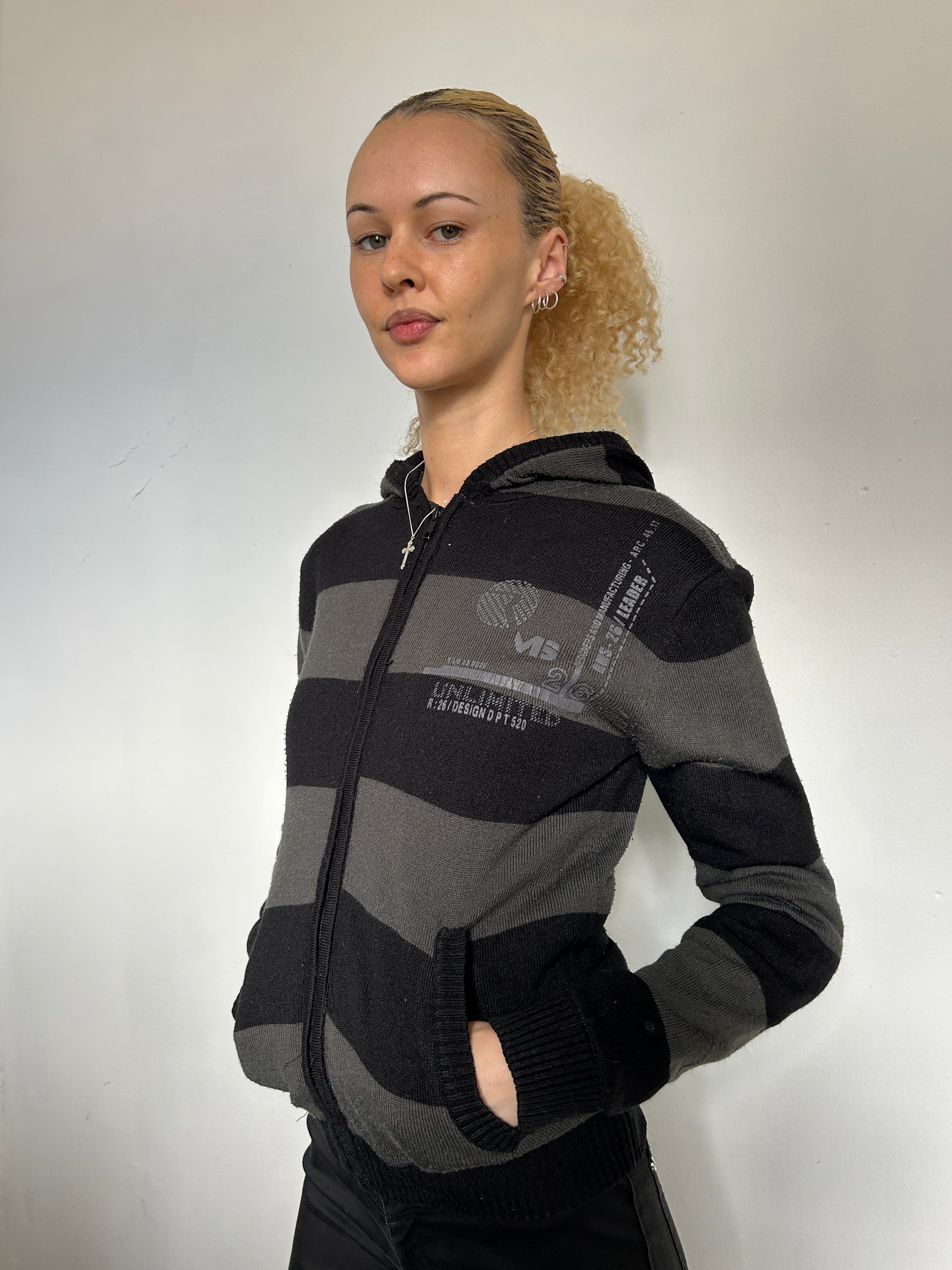 Black Grey Striped Zip Up Hoodie - Size Extra-Small