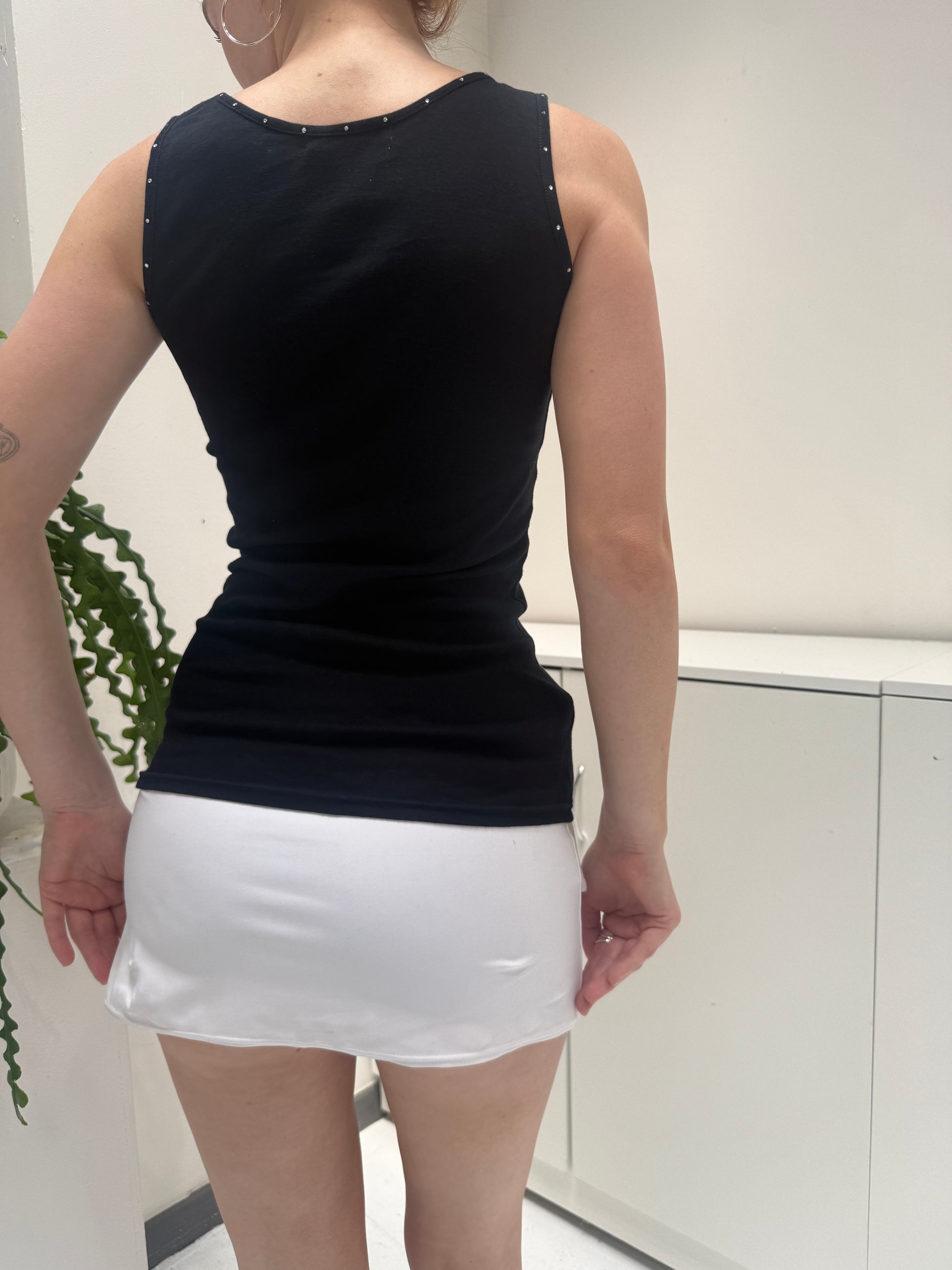 Fits like a size small. Tag says size 10. 27 inches from pit to pit and 17 inches long measured from pit to bottom.