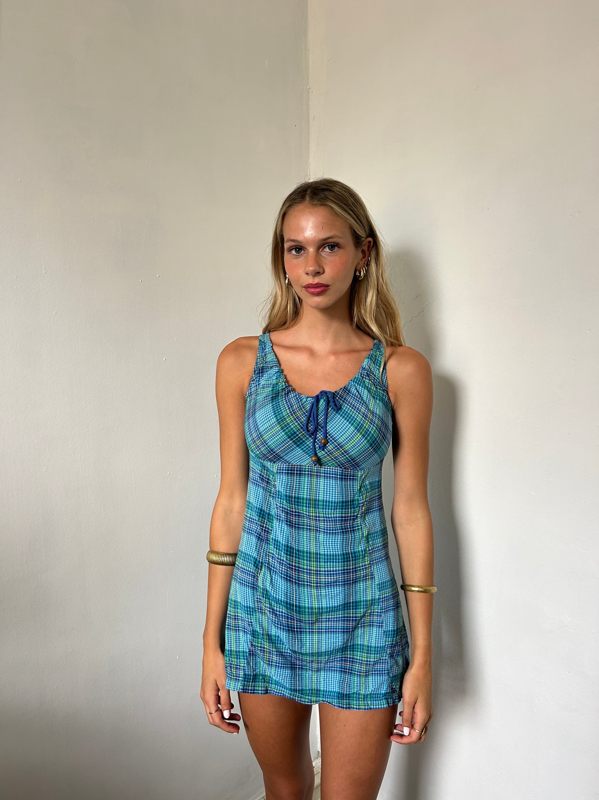 Fits like a size small. 28 inches from pit to pit and 70cm long. Material kind of cinches in middle (see pics).
