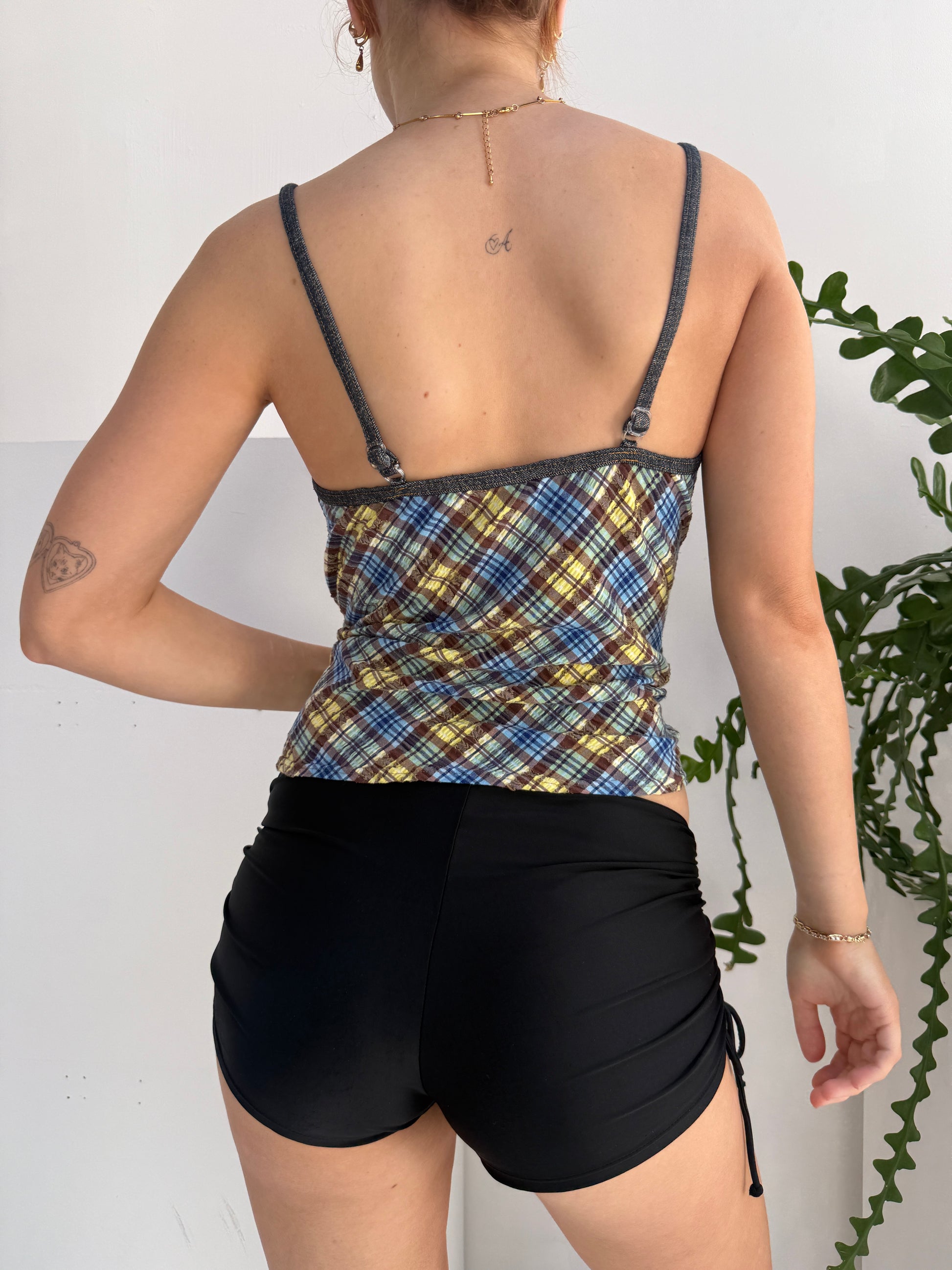 Gingham Blue Brown Yellow Swim Top - Size Medium