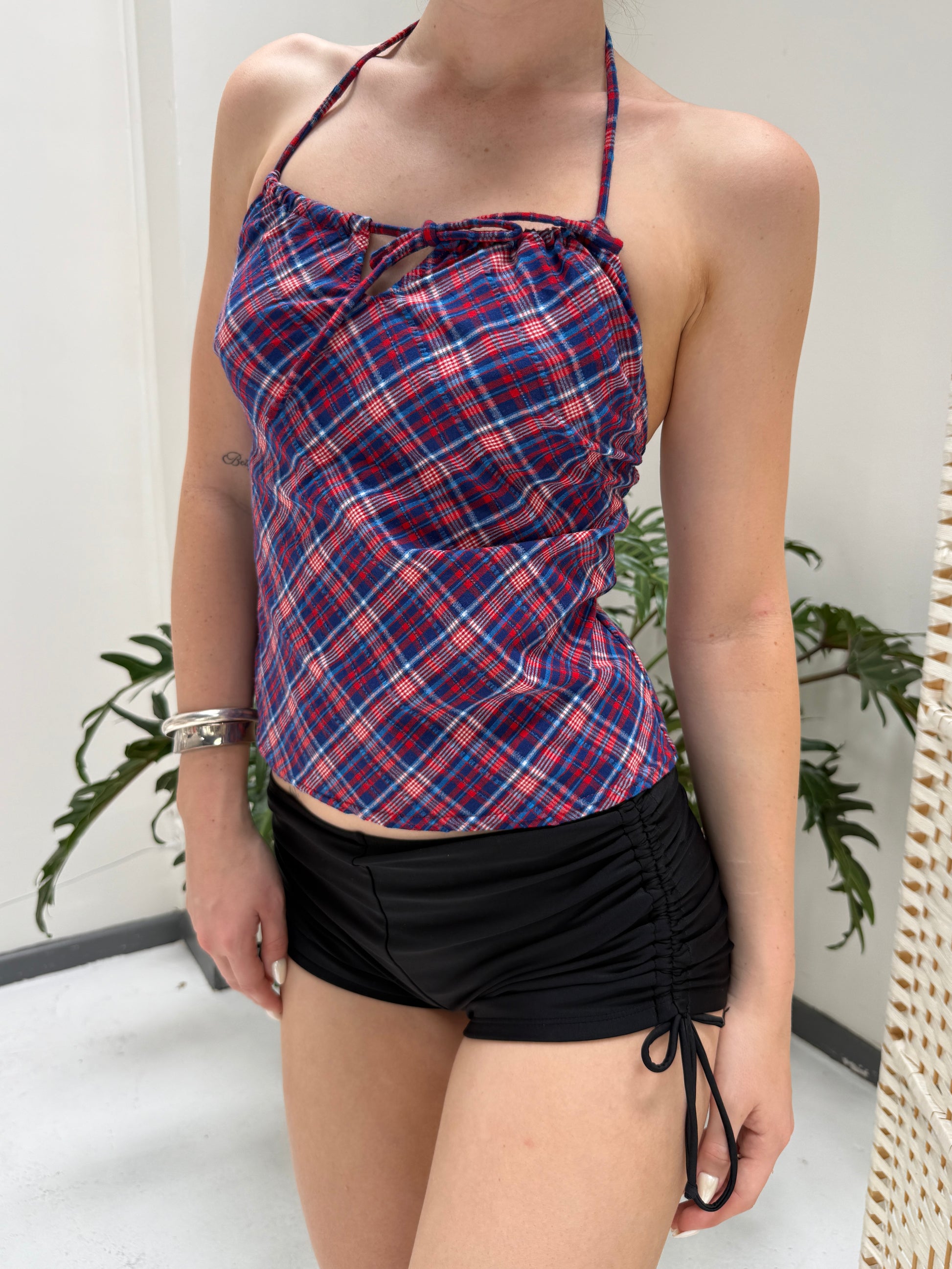 Fits like a size small. 28 inches from pit to pit and 10.5 inches long measured from pit to bottom.