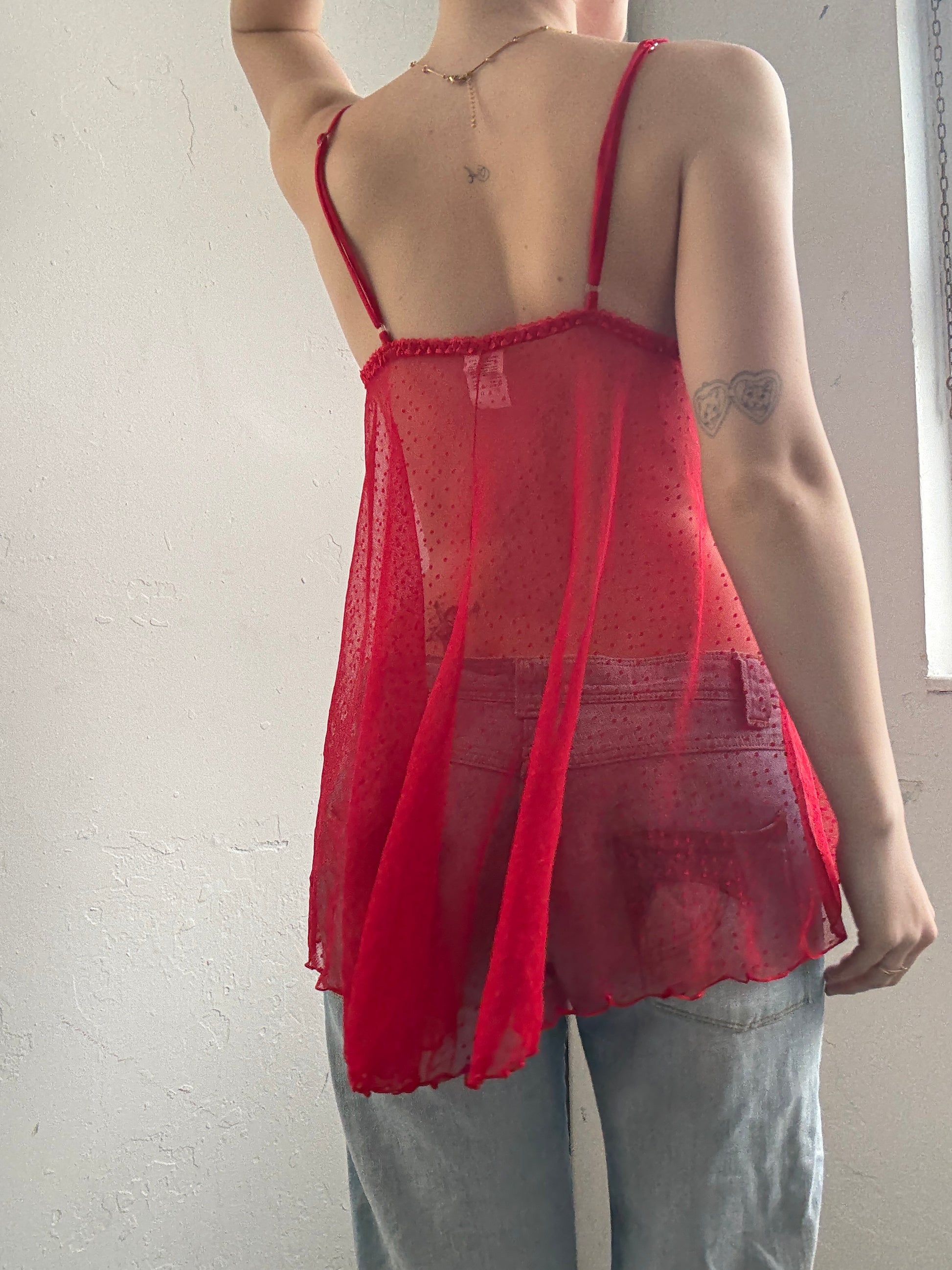 Red Cami Sheer Top - Size Large