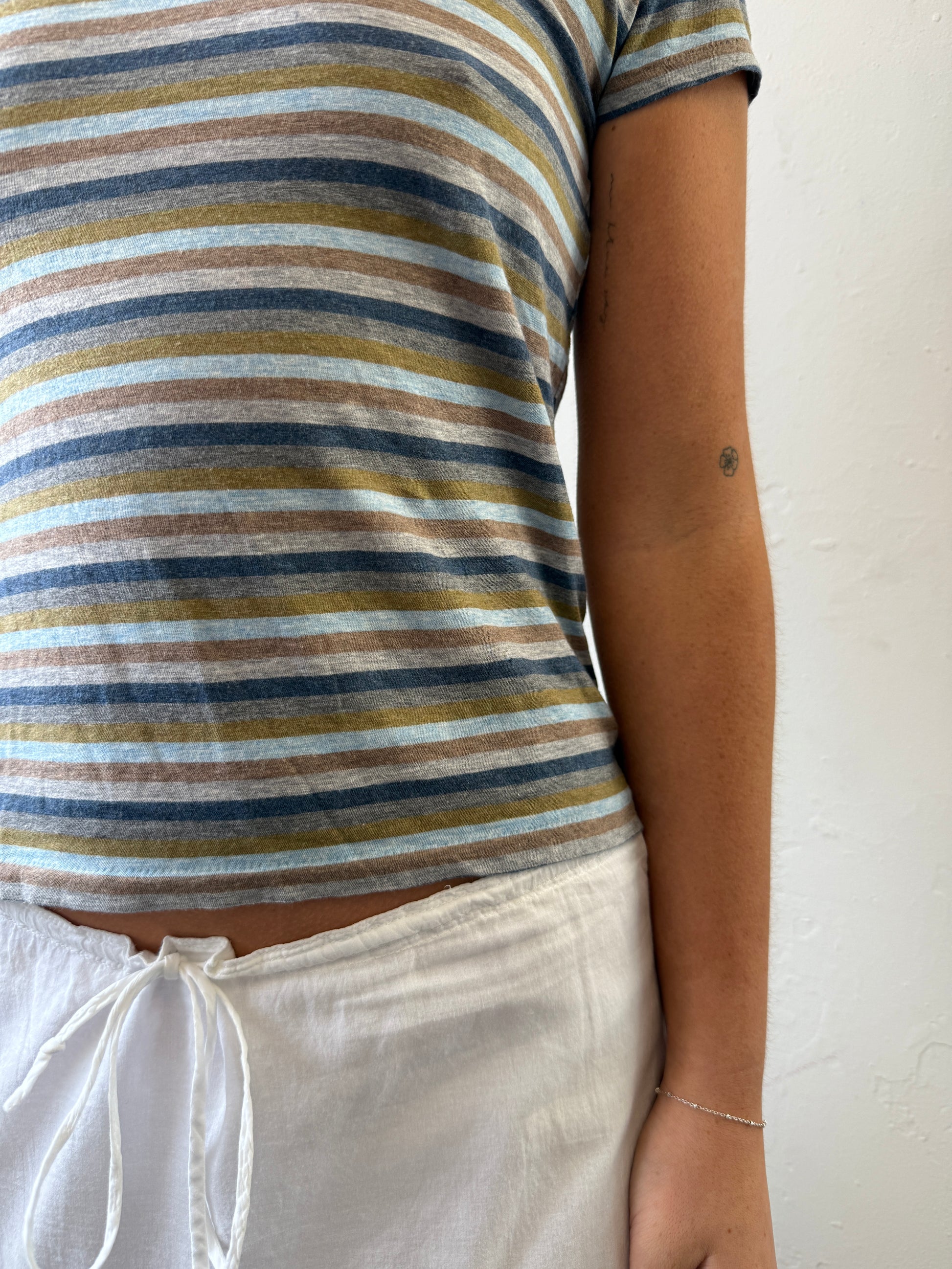 Striped blue green and brown v neck tee from United Colours of Benetton.